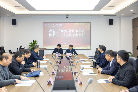 2025年10月27日,三門峽職業(yè)技術(shù)學(xué)院黨委書記楊彤率隊,副院長彭博、黨委委員兼副院長員瑩、院長助理李啟松等領(lǐng)導(dǎo)一行赴西安科技大學(xué)高新學(xué)院開展考察調(diào)研活動。西安科技大學(xué)高新學(xué)院董事長孫龍杰、副院長王福豹、王國良,院長助理胡秋實、辦公室主任王智榮等領(lǐng)導(dǎo),及陜西航天意德高科技產(chǎn)業(yè)有限公司、西安西科節(jié)能集團有限公司等企業(yè)代表參與此次交流,雙方圍繞教育發(fā)展、校企合作、產(chǎn)教融合等領(lǐng)域深度聯(lián)動,共探發(fā)展新路徑。