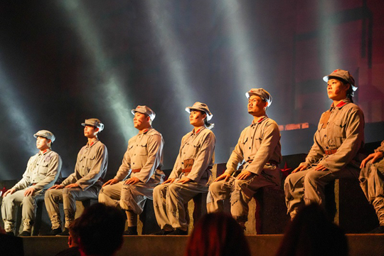 延安紅街的《再回延安》沉浸式演出則讓歷史“活”了起來。以老紅軍劉寶順的回憶為主線,“行走式”演繹的“紅旗班”戰(zhàn)士爬雪山、過草地及接旗宣誓的情節(jié),讓師生們?cè)谏砼R其境中體悟長征精神的堅(jiān)韌不屈。