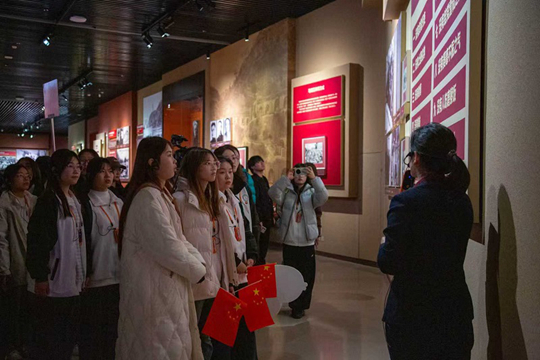 在延安革命紀(jì)念館,安塞腰鼓的激昂節(jié)奏點(diǎn)燃了現(xiàn)場(chǎng)氛圍。入館后,毛澤東轉(zhuǎn)戰(zhàn)陜北的“小白馬”、書寫《沁園春·雪》的小炕桌、鐫刻真理光芒的“實(shí)事求是”石刻三件文物,成為最生動(dòng)的思政教材,配合館內(nèi)群雕與歷史照片,黨中央在延安的奮斗歷程愈發(fā)清晰可感。