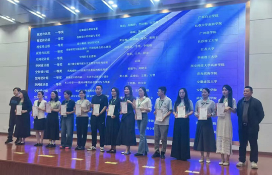 9月28日,第八屆全國(guó)數(shù)字創(chuàng)意教學(xué)技能大賽頒獎(jiǎng)典禮在長(zhǎng)沙理工大學(xué)圖書(shū)館報(bào)告廳隆重舉行,F(xiàn)場(chǎng)氛圍莊重而熱烈,獎(jiǎng)項(xiàng)公布環(huán)節(jié)以顯示屏滾動(dòng)公示的形式有序推進(jìn)——先是三等獎(jiǎng)名單逐一呈現(xiàn),接著是二等獎(jiǎng)揭曉,隨著流程進(jìn)入高潮,顯示屏上正式公布全國(guó)一等獎(jiǎng)獲獎(jiǎng)名單,西安科技大學(xué)高新學(xué)院崔麗華、劉曉克老師的教學(xué)團(tuán)隊(duì)與全國(guó)其他十余個(gè)優(yōu)秀競(jìng)賽團(tuán)隊(duì)一同上榜。當(dāng)完整的一等獎(jiǎng)名單公示完畢,全場(chǎng)隨即響起熱烈掌聲,向所有斬獲全國(guó)一等獎(jiǎng)的優(yōu)秀教學(xué)團(tuán)隊(duì)致以敬意。隨后,劉曉克老師代表學(xué)院團(tuán)隊(duì)受邀上臺(tái),從評(píng)委手中鄭重接過(guò)榮譽(yù)證書(shū)。這一高光時(shí)刻,不僅是對(duì)崔麗華、劉曉克兩位老師教學(xué)能力與創(chuàng)新水平的高度肯定,更彰顯了學(xué)院在全國(guó)數(shù)字創(chuàng)意教學(xué)領(lǐng)域的實(shí)力,亦是學(xué)院數(shù)字創(chuàng)意教學(xué)成果的重要見(jiàn)證。