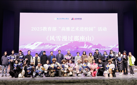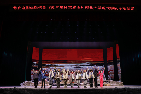 11月6日,教育部“高雅藝術(shù)進校園”2025年系列活動走進西北大學(xué)現(xiàn)代學(xué)院,在學(xué)校文體館展演了由北京電影學(xué)院精心排練的大型紅色話劇《風(fēng)雪漫過那座山》。西北大學(xué)現(xiàn)代學(xué)院董事長劉家全等學(xué)校領(lǐng)導(dǎo),著名演員趙思源、梁麗等嘉賓及陜西師范大學(xué)、長安大學(xué)、西北大學(xué)、西安外國語大學(xué)、西安翻譯學(xué)院、西安外事學(xué)院等校師生代表上千人觀看了演出。