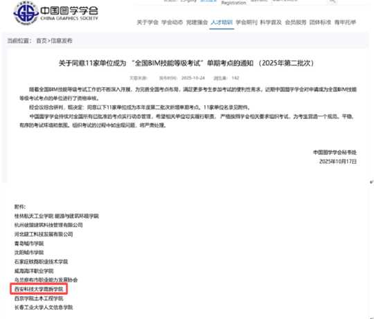 | 錨定數(shù)智轉(zhuǎn)型 賦能人才培育——西安科技大學(xué)高新學(xué)院成功獲批“全國(guó)BIM技能等級(jí)考試”考點(diǎn) |