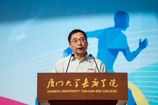 雷銳生引用“體育強(qiáng)則中國強(qiáng),國運(yùn)興則體育興”,強(qiáng)調(diào)體育的重要性。他指出,一直以來,學(xué)校弘揚(yáng)校主陳嘉庚先生“強(qiáng)國強(qiáng)民”的愛國體育思想,以立德樹人為根本,秉持健康第一的教育理念,以增強(qiáng)學(xué)生體質(zhì)為中心,扎實(shí)推進(jìn)體教融合落地,不斷深化體育俱樂部教學(xué)模式的改革與實(shí)踐。在過去的兩年,學(xué)校體育工作緊跟時代步伐,在體育競賽、教學(xué)科研、設(shè)施建設(shè)、校企合作等方面取得了長足的進(jìn)步。值得一提的是,在2024年、2025年中國大學(xué)生跆拳道錦標(biāo)賽中,跆拳道隊(duì)勇奪甲組團(tuán)體總分全國第一,成功實(shí)現(xiàn)四連冠;在2024年、2025年福建省大學(xué)生游泳錦標(biāo)賽中,游泳隊(duì)強(qiáng)勢拿下7金6銀5銅;在2024年福建省大學(xué)生網(wǎng)球聯(lián)賽中,網(wǎng)球隊(duì)斬獲甲組混合團(tuán)體冠軍。不僅如此,2025年,校跆拳道隊(duì)、游泳隊(duì)、籃球隊(duì)、田徑隊(duì)的6名隊(duì)員跨專業(yè)成功考上國內(nèi)外知名高校體育專業(yè)研究生。