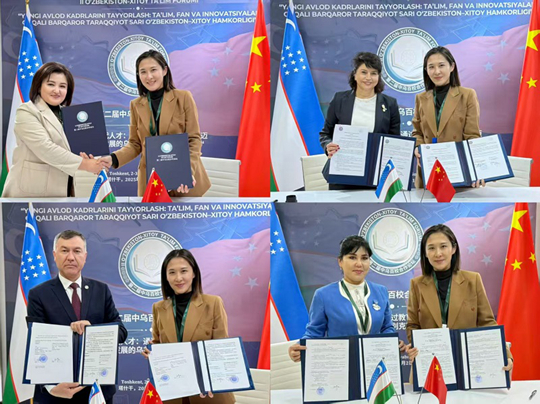 論壇期間,張晨副院長與烏茲別克斯坦國立世界語言大學等10余所高校達成合作共識并簽署合作協(xié)議。為中烏兩國高校在人才培養(yǎng)、學術交流、語言培訓、文化互通等方面合作奠定了良好的根基。