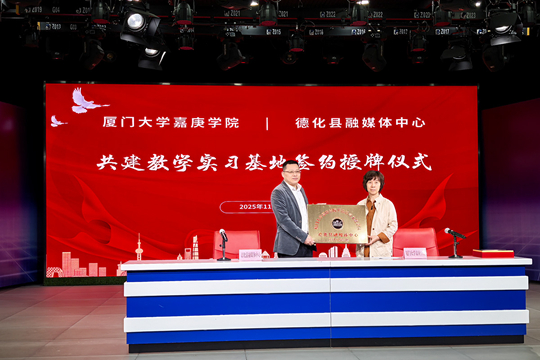 此次兩個實踐基地的建立,不僅為高?缥幕膰H傳播人才提供了實現(xiàn)創(chuàng)意的沃土,也為德化陶瓷產(chǎn)業(yè)的長遠(yuǎn)發(fā)展夯實了人才基礎(chǔ)。值得一提的是,德化縣廣播電視臺對德化縣融媒體中心與廈門大學(xué)嘉庚學(xué)院英語語言文化學(xué)院的合作進行了報道。當(dāng)天的“德化新聞”報道指出,“(這)標(biāo)志著雙方在校媒合作、協(xié)同育人領(lǐng)域邁出實質(zhì)性一步,旨在整合資源優(yōu)勢,共同培養(yǎng)適應(yīng)新時代國際傳播需求的高素質(zhì)復(fù)合型人才!