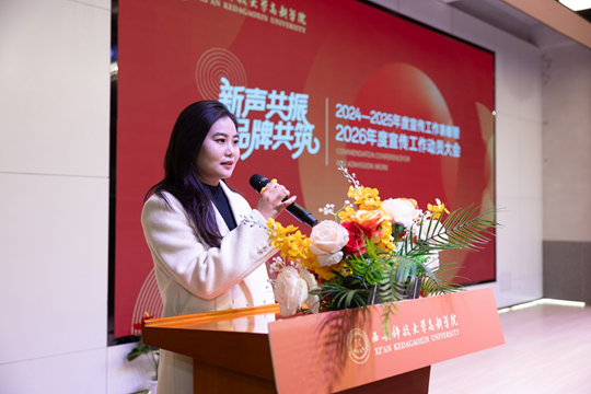 2024—2025年度宣傳工作表彰暨2026年度工作動(dòng)員大會(huì)的召開,不僅總結(jié)了過往成績、表彰了先進(jìn)典型,更凝聚了全院上下共同推進(jìn)宣傳工作的強(qiáng)大合力,為學(xué)院2026年度品牌宣傳建設(shè)工作的開展指明了方向。未來,西安科技大學(xué)高新學(xué)院將繼續(xù)秉持“新聲共振 品牌共筑”的理念,創(chuàng)新傳播方式、提升宣傳質(zhì)效,持續(xù)講好高新故事、擦亮學(xué)院品牌,為學(xué)院各項(xiàng)事業(yè)高質(zhì)量發(fā)展提供強(qiáng)有力的思想保證和輿論支持。