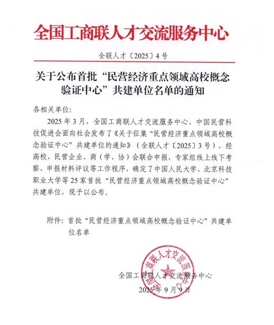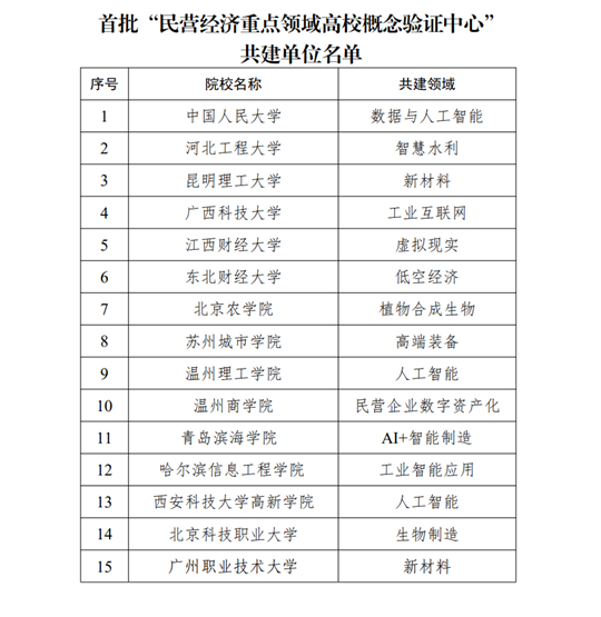 “民營經(jīng)濟重點領(lǐng)域高校概念驗證中心”共建計劃,是全國工商聯(lián)人才交流服務(wù)中心與中國民營科技促進會為貫徹落實《中共中央 國務(wù)院關(guān)于促進民營經(jīng)濟發(fā)展壯大的意見》而開展的重要項目,旨在通過整合高校、民營企業(yè)、商(學(xué)、協(xié))會等多方資源,加速科技成果產(chǎn)業(yè)化進程,解決科技成果轉(zhuǎn)化“最后一公里”難題。該計劃重點聚焦人工智能、低空經(jīng)濟、生物醫(yī)藥、新能源汽車、新一代信息技術(shù)、集成電路、光電子信息、智能制造、新材料、雙碳、數(shù)字經(jīng)濟、工業(yè)機器人、工業(yè)互聯(lián)網(wǎng)、虛擬現(xiàn)實、數(shù)字住建、智慧交通等多個前沿領(lǐng)域,力爭在3年內(nèi)共建150家左右特色鮮明的高校概念驗證中心。