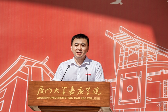“‘嘉庚人’是校主陳嘉庚先生精神的傳承者,是我!褂谥辽啤S(xùn)的踐行者,也是我校全球近七萬(wàn)名校友與兩萬(wàn)兩千多名在校生共同的名字!蓖跞鸱家I(lǐng)新生探尋“嘉庚人”這一共同名字背后的豐富內(nèi)涵。他進(jìn)一步提到,“嘉庚人”普遍給人留下誠(chéng)信堅(jiān)毅、心懷家國(guó)、務(wù)實(shí)能干的深刻印象。新同學(xué)的加入,為“嘉庚人”這三個(gè)字注入了嶄新的血液,帶來(lái)了全新的可能。他滿懷期待地鼓勵(lì)新生,在未來(lái)的大學(xué)生活里,大膽探索、勇敢試錯(cuò)、深度思考,找到自己的熱愛,獲得創(chuàng)造幸福和貢獻(xiàn)社會(huì)的能力,續(xù)寫“嘉庚人”的輝煌篇章。