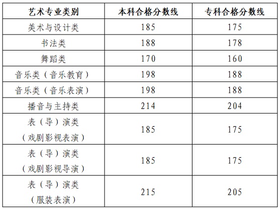 | 山東省2024年普通高校招生藝術(shù)類專業(yè)統(tǒng)考合格分?jǐn)?shù)線 |