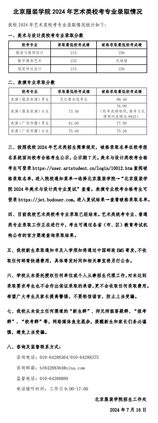 北京服裝學(xué)院2024年藝術(shù)類?紝I(yè)錄取情況