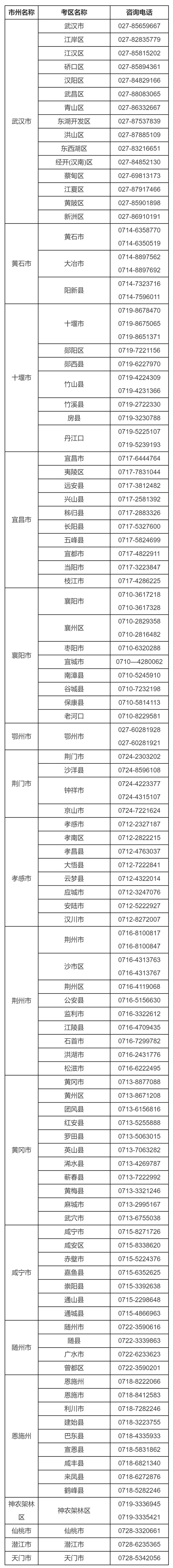 2026年湖北省各市(州)考區(qū)普通高考報(bào)名咨詢電話
