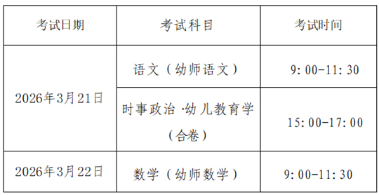 (2)教育類專業(yè)文化課考試科目及時(shí)間為: