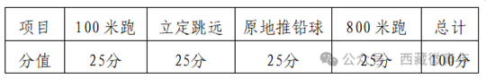 考試科目共有四項(xiàng)。分別是100米跑、立定跳遠(yuǎn)、原地推鉛球、800米跑。