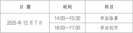 3.開考15分鐘后,考生不得進入考點參加相應(yīng)科目考試。書法臨摹考試結(jié)束前15分鐘內(nèi)方可交卷,交卷后不允許出場,不得接觸手機等違規(guī)物品。書法創(chuàng)作考試結(jié)束前30分鐘內(nèi)方可交卷出場,交卷出場后不得再進場續(xù)考,也不準在考場附近逗留或交談。