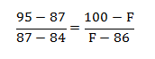 例如,考生某再選科目考試原始分數(shù)為87分,劃分至A等級。當年該學(xué)科A等級原始分區(qū)間為95——84分,賦分區(qū)間為100——86分,那么該生的等級分為: