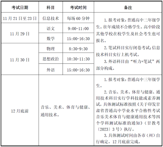 附件:2025年冬季甘肅省普通高中學(xué)業(yè)水平合格性考試科目及時間安排