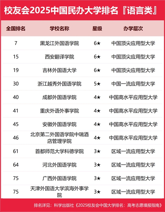 2025中國語言類民辦大學(xué)排名,黑龍江外國語學(xué)院第一,吉林外國語大學(xué)前三