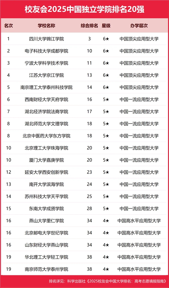 四川大學(xué)錦江學(xué)院雄居2025中國獨立學(xué)院排名第一,寧波大學(xué)科學(xué)技術(shù)學(xué)院挺進(jìn)前三甲