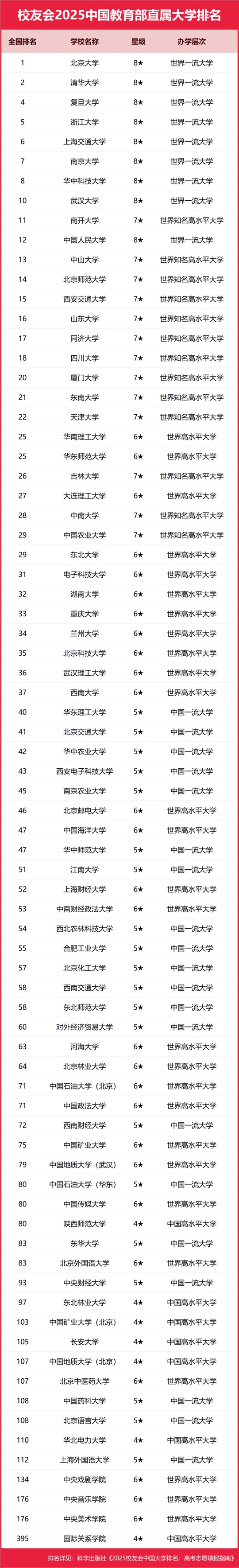 北京大學(xué)、清華大學(xué)雄居2025中國教育部直屬大學(xué)排名冠亞軍,武漢大學(xué)躋身八強(qiáng)