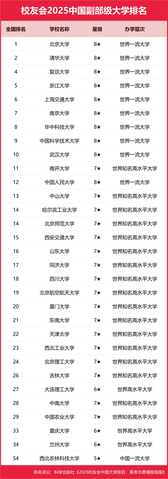 | 校友會(huì)2025中國副部級(jí)大學(xué)排名,華中科技大學(xué)前十 |