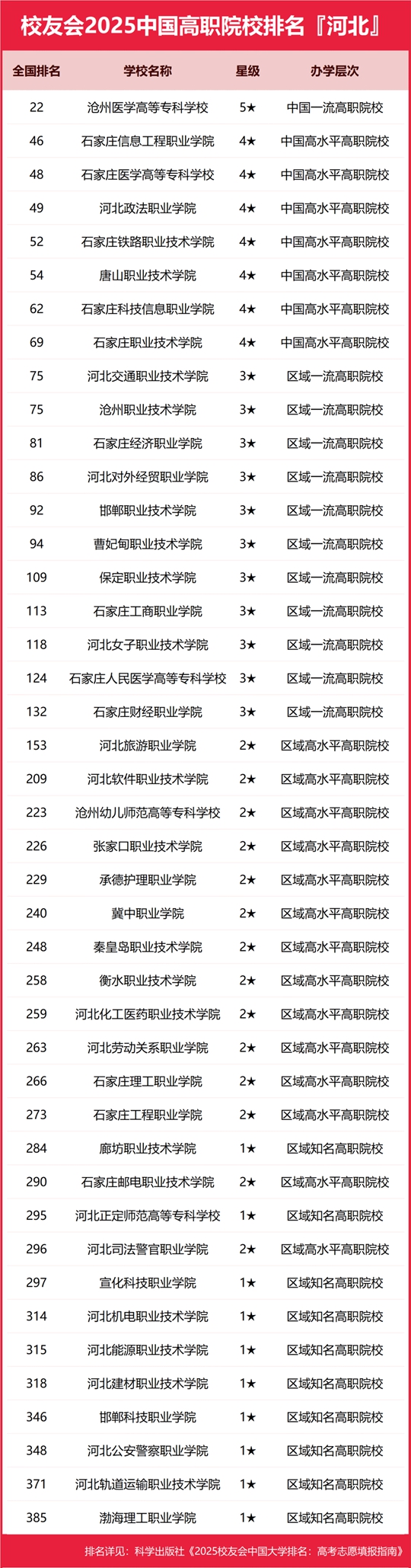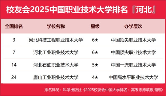 校友會2025河北省職業(yè)技術(shù)大學(xué)排名,河北科技工程職業(yè)技術(shù)大學(xué)第一,唐山工業(yè)職業(yè)技術(shù)大學(xué)第四