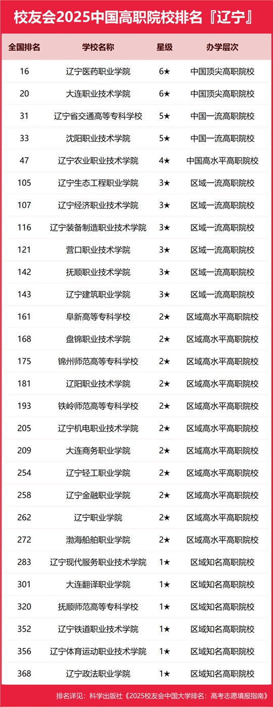 校友會2025遼寧省高職院校排名,遼寧醫(yī)藥職業(yè)學(xué)院第一,遼寧省交通高等?茖W(xué)校第三
