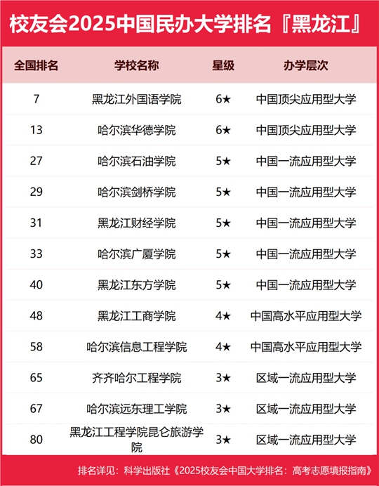 校友會(huì)2025黑龍江省民辦大學(xué)排名,黑龍江外國(guó)語(yǔ)學(xué)院第一,哈爾濱華德學(xué)院第二