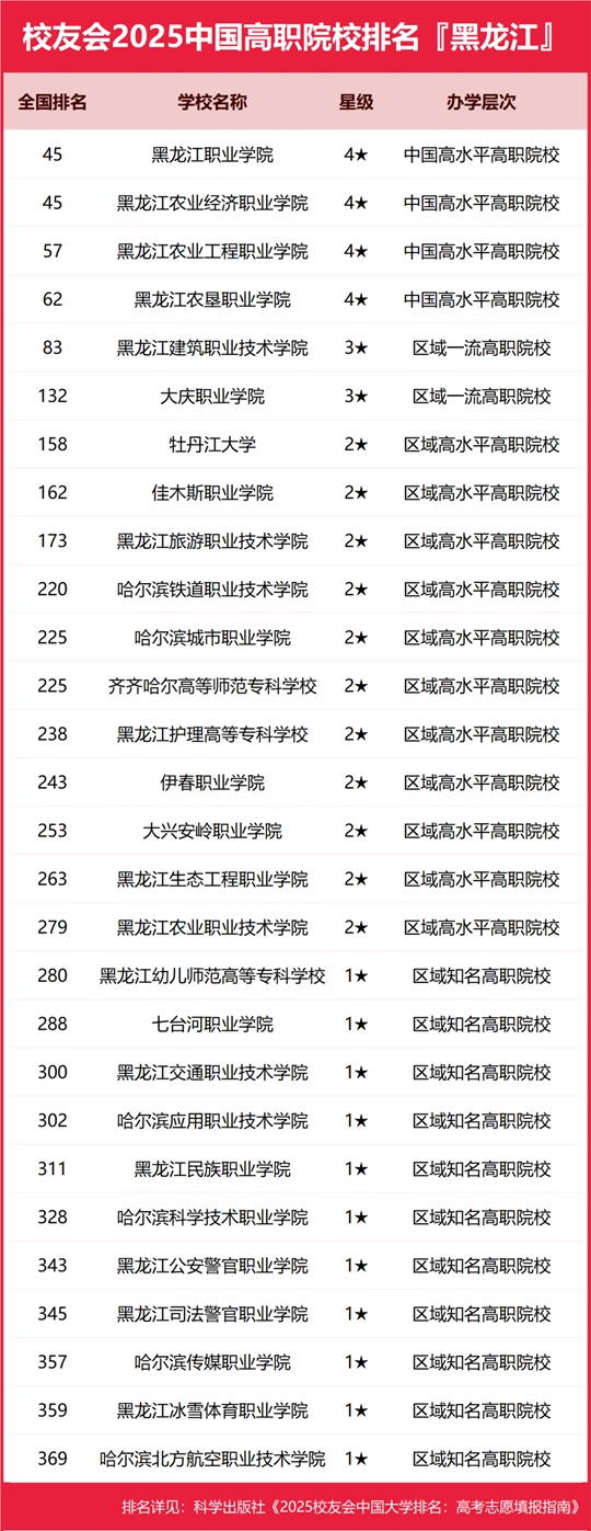 校友會(huì)2025黑龍江省高職院校排名,黑龍江職業(yè)學(xué)院、黑龍江農(nóng)業(yè)經(jīng)濟(jì)職業(yè)學(xué)院并列第一