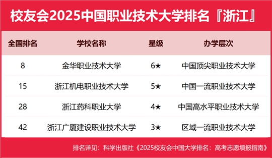 校友會(huì)2025浙江省職業(yè)技術(shù)大學(xué)排名,金華職業(yè)技術(shù)大學(xué)第一
