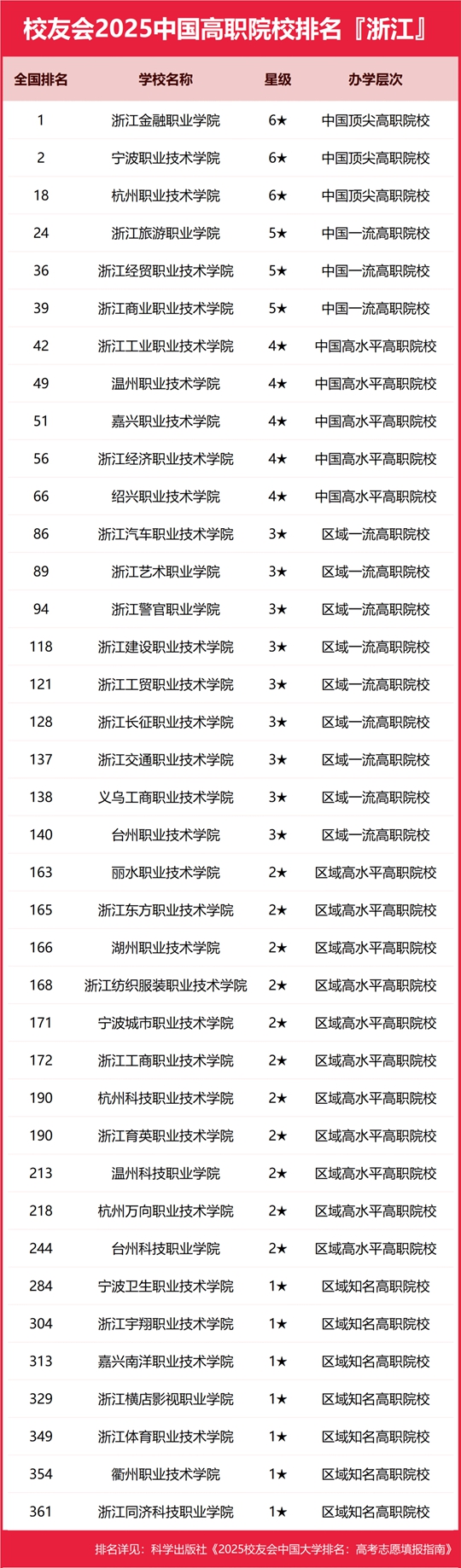 校友會(huì)2025浙江省高職院校排名,浙江金融職業(yè)學(xué)院第一,寧波職業(yè)技術(shù)學(xué)院第二