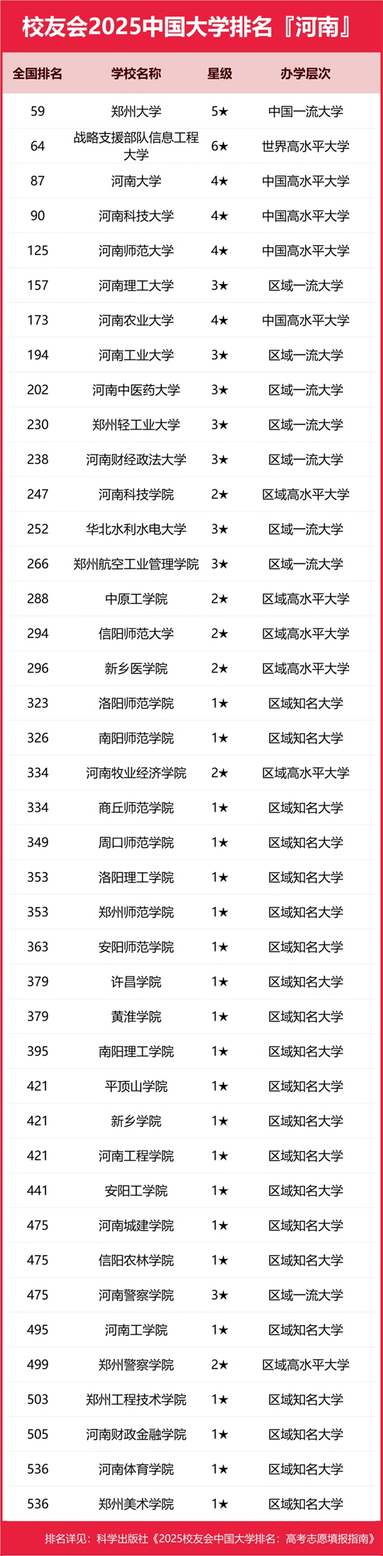 | 校友會2025河南省大學(xué)排名,鄭州大學(xué)、商丘學(xué)院、河南科技職業(yè)大學(xué)第一 |