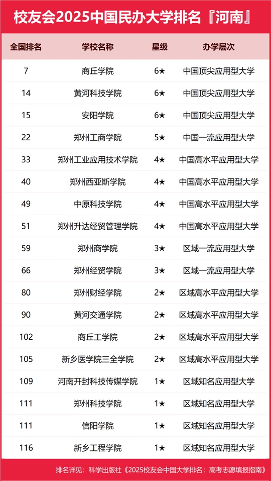 校友會2025河南省民辦大學(xué)排名,商丘學(xué)院第一,黃河科技學(xué)院前二