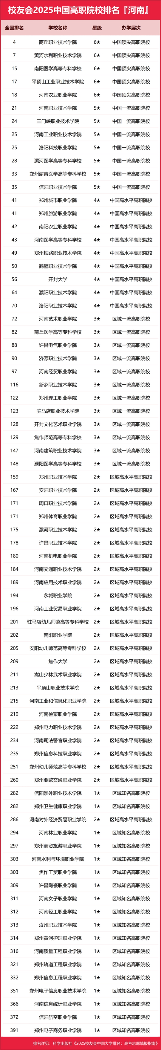 校友會2025河南省高職院校排名,商丘職業(yè)技術(shù)學(xué)院第一,黃河水利職業(yè)技術(shù)學(xué)院第二