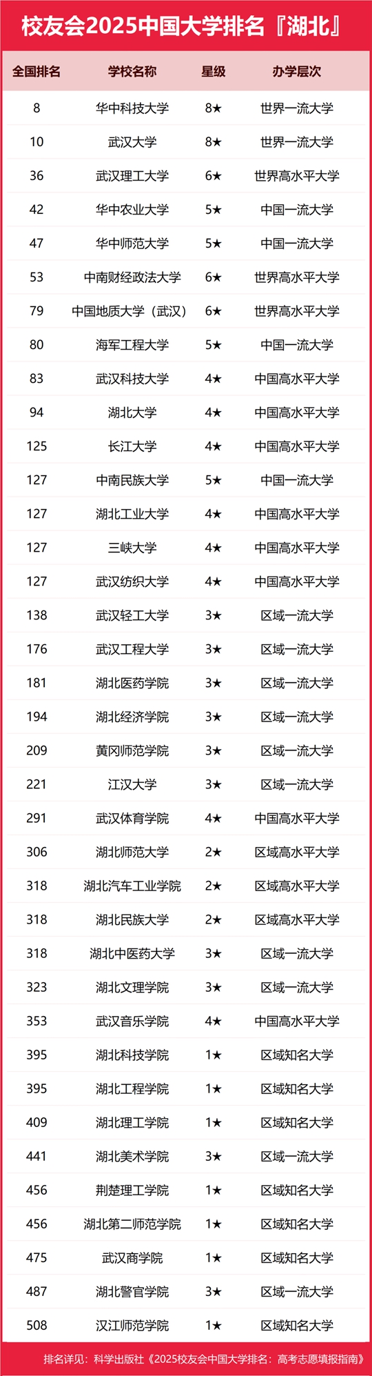 校友會(huì)2025湖北省大學(xué)排名,華中科技大學(xué)第一,湖北大學(xué)前十