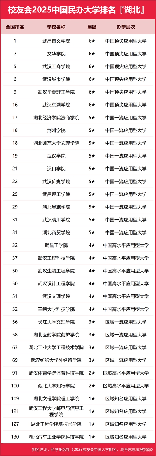 校友會(huì)2025湖北省民辦大學(xué)排名,武昌首義學(xué)院第一,武漢工商學(xué)院第三