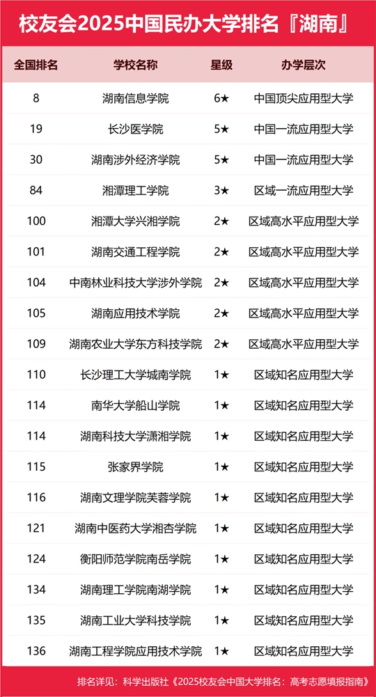 校友會2025湖南省民辦大學(xué)排名,湖南信息學(xué)院第一,湖南涉外經(jīng)濟學(xué)院第三