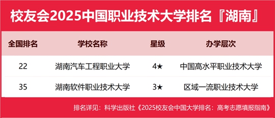 校友會2025湖南省職業(yè)技術(shù)大學(xué)排名,湖南汽車工程職業(yè)大學(xué)第一,湖南軟件職業(yè)技術(shù)大學(xué)第二