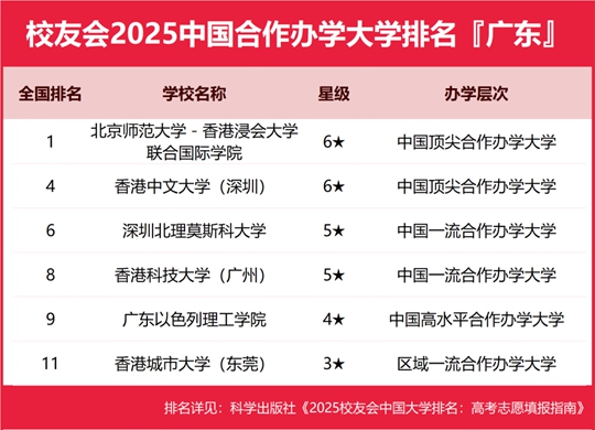 2025廣東省合作辦學大學排名,北京師范大學——香港浸會大學聯(lián)合國際學院第一,香港中文大學(深圳)第二