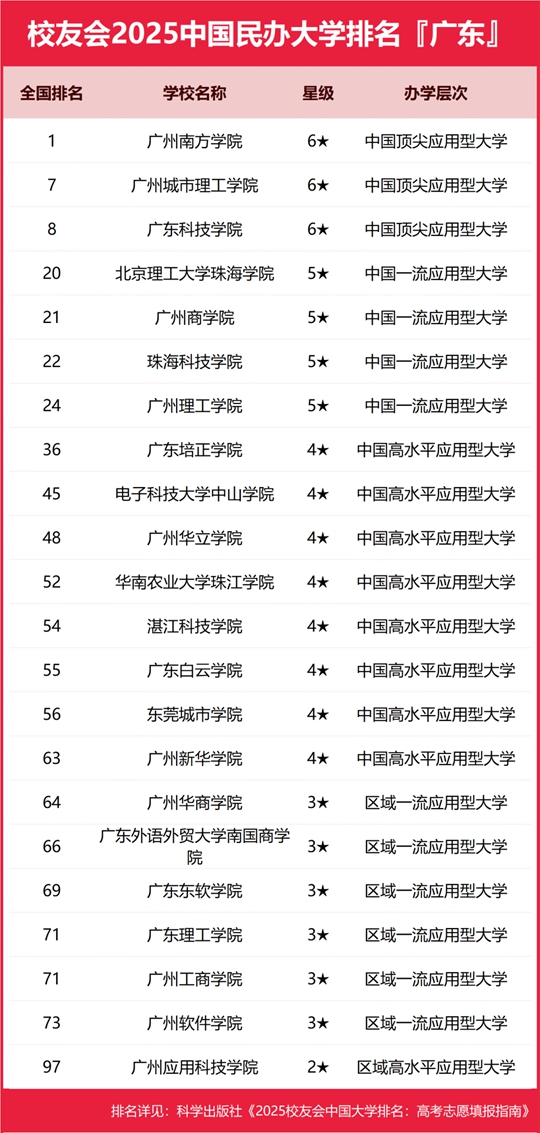 校友會2025廣東省民辦大學排名,廣州南方學院第一,廣東科技學院前三