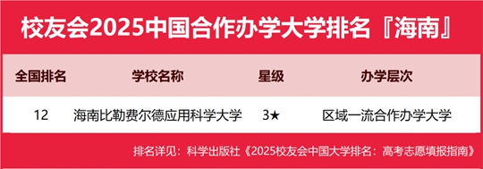 校友會2025海南省合作辦學(xué)大學(xué)排名,海南比勒費(fèi)爾德應(yīng)用科學(xué)大學(xué)第一