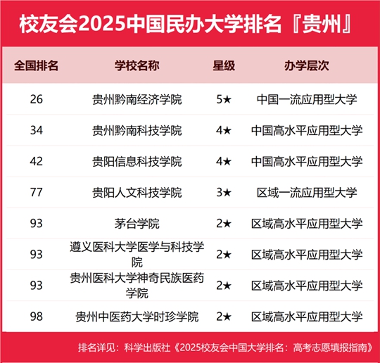 校友會(huì)2025貴州省民辦大學(xué)排名,貴州黔南經(jīng)濟(jì)學(xué)院第一,貴陽信息科技學(xué)院前三