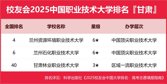 2025甘肅省職業(yè)技術(shù)大學(xué)排名,蘭州資源環(huán)境職業(yè)技術(shù)大學(xué)第一,蘭州石化職業(yè)技術(shù)大學(xué)第二