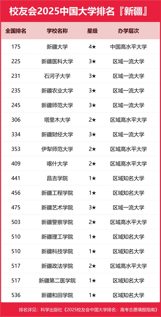 校友會(huì)2025新疆維吾爾自治區(qū)大學(xué)排名,新疆大學(xué)第一,石河子大學(xué)第三