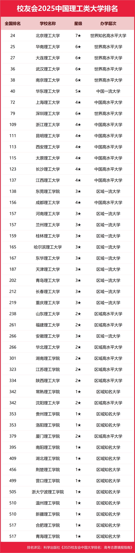 | 校友會(huì)2025中國(guó)理工大學(xué)排名,北京理工大學(xué)、齊魯理工學(xué)院、廣西理工職業(yè)技術(shù)學(xué)院第一 |