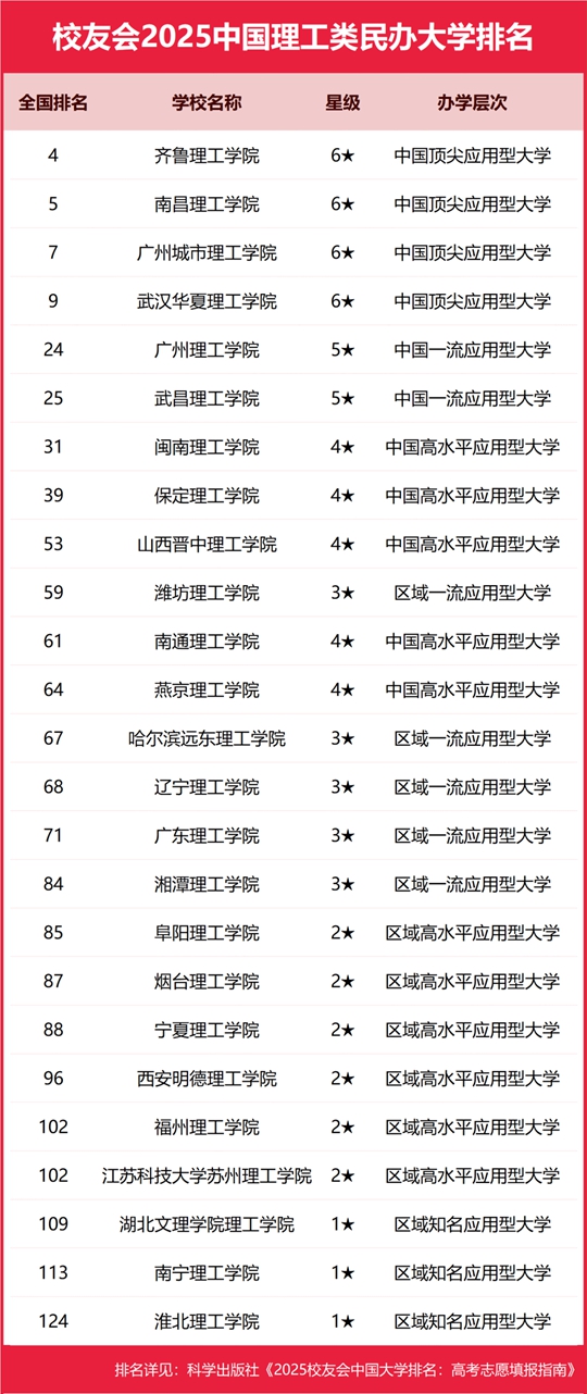 齊魯理工學(xué)院位列2025中國(guó)理工民辦大學(xué)排名榜首,廣州城市理工學(xué)院前三