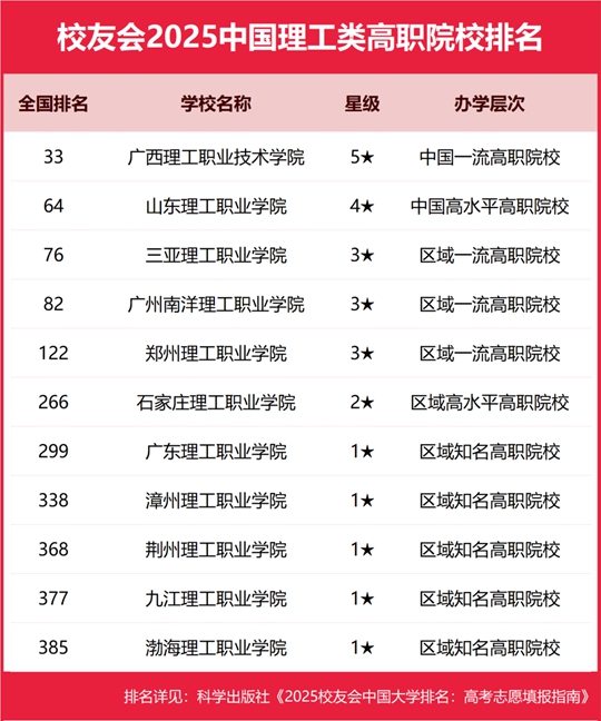 廣西理工職業(yè)技術(shù)學(xué)院勇奪2025中國(guó)理工高職院校排名第一,三亞理工職業(yè)學(xué)院前三