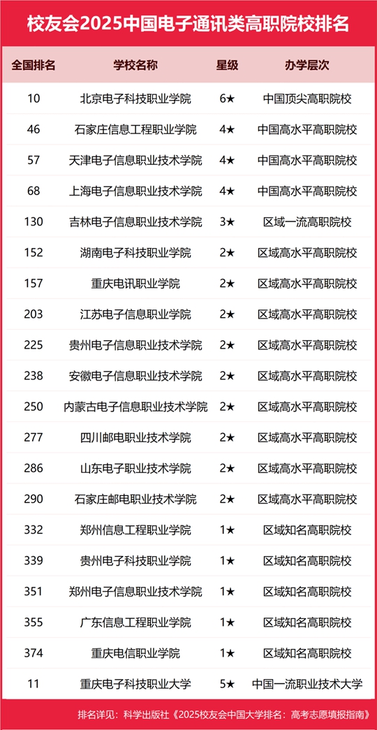 北京電子科技職業(yè)學(xué)院勇奪2025中國(guó)電子通訊類高職院校排名第一,天津電子信息職業(yè)技術(shù)學(xué)院前三