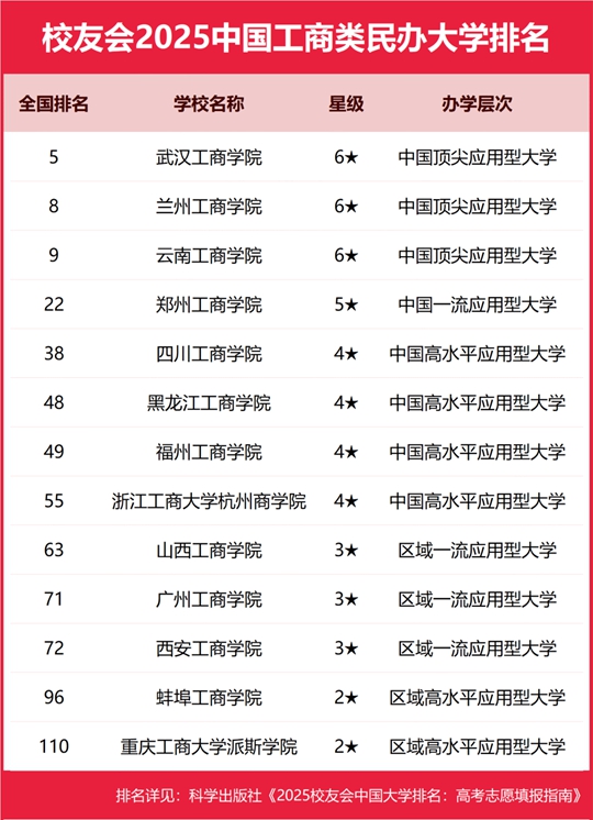 武漢工商學(xué)院位列2025中國(guó)工商類(lèi)民辦大學(xué)排名榜首,云南工商學(xué)院前三