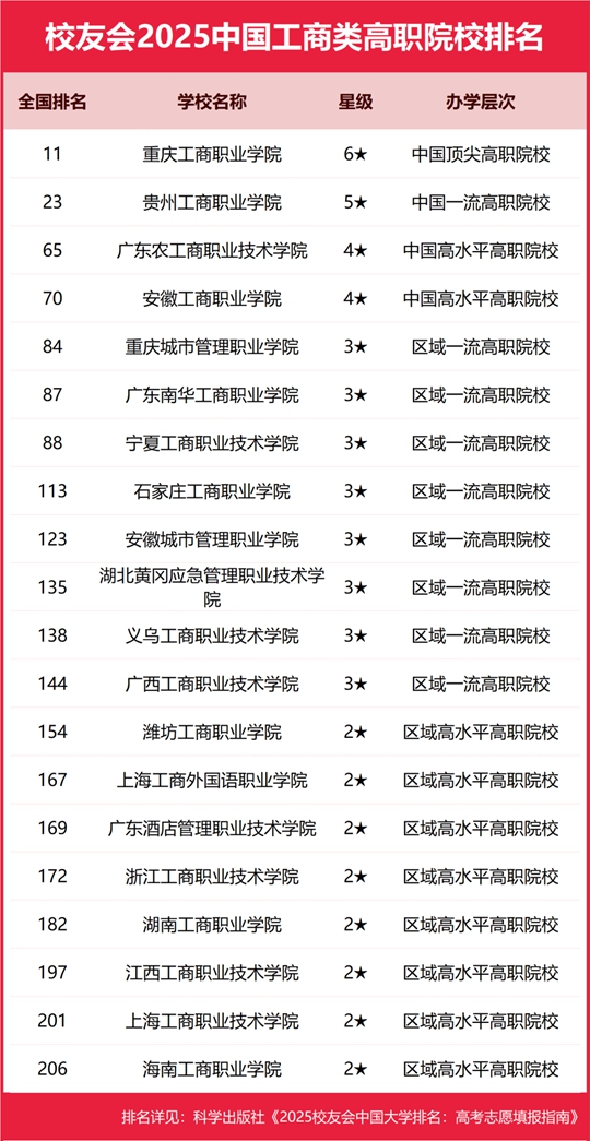 重慶工商職業(yè)學(xué)院勇奪2025中國(guó)工商類(lèi)高職院校排名第一,貴州工商職業(yè)學(xué)院第二