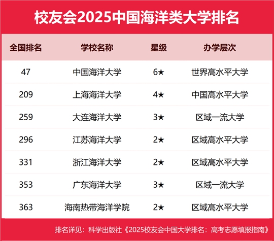 | 校友會(huì)2025中國(guó)海洋類大學(xué)排名,中國(guó)海洋大學(xué)、廈門海洋職業(yè)技術(shù)學(xué)院第一 |